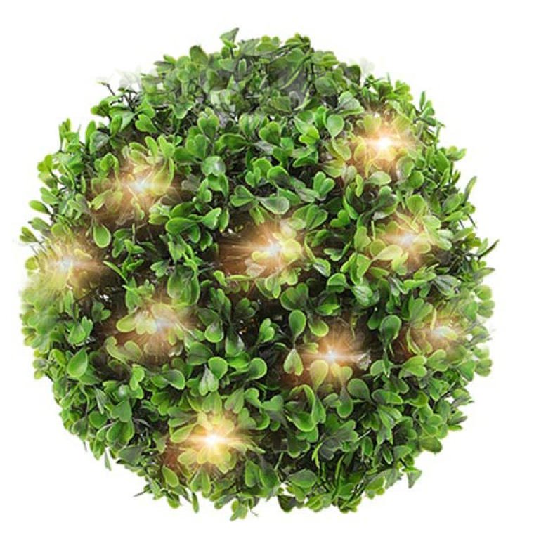 Te trzy kule bukszpanu, umieszczone w donicy lub wbite w ziemię, to doskonały sposób na udekorowanie i wzbogacenie wyglądu Twojego ogrodu. Wykonane z wysokiej jakości plastiku, gwarantują trwałość oraz odporność na warunki atmosferyczne, co sprawia, że idealnie nadają się do użytku na zewnątrz. Ich naturalna struktura i staranne wykonanie sprawiają, że wyglądają niezwykle realistycznie, a ich obecność doda zieleni każdemu otoczeniu. W ciągu dnia lampki umieszczone w krzaczkach ładują się, a po zmroku emitują ciepłe światło, tworząc przyjemną atmosferę. Z kulami o wysokości około 50 cm (±) i 27 diodami LED (po 9 na każdej kuli), masz możliwość wyboru między światłem stałym a migającym. Dodatkowym atutem jest brak przewodów elektrycznych, co umożliwia łatwą instalację w dowolnym miejscu, a w zestawie znajdziesz również groty do wbicia w ziemię oraz baterię typu AA. Te efektowne kule bukszpanu to świetny wybór dla każdego, kto pragnie dodać magii swojemu ogrodowi, zarówno w dzień, jak i w nocy.