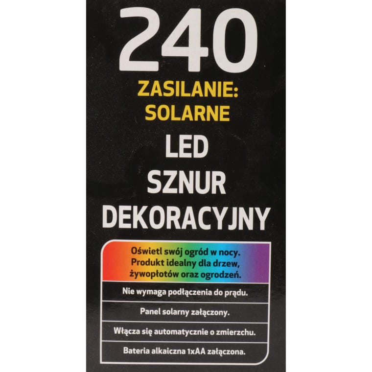 Lampki choinkowe 240 LED zasilane energią słoneczną to doskonałe rozwiązanie do oświetlenia zewnętrznego, które zapewnia piękne, ciepłe, białe światło bez zasilania do źródła prądu. Dostępny w polikrystalicznym panelu słonecznym o wymiarach 6,5 x 8 cm, automatycznie włączający się do zmierzchu, co czyni je wygodnymi i użytecznymi w użytkowaniu. Idealnie sprawdza się do oświetlania drzew, żywopłotów, ogrodzeń oraz innych elementów wyposażenia, tworzących nastrojową atmosferę. To ekologiczna i praktyczna ozdoba na święta, która doda magiczne Twojemu otoczeniu, jednocześnie dbając o środowisko.