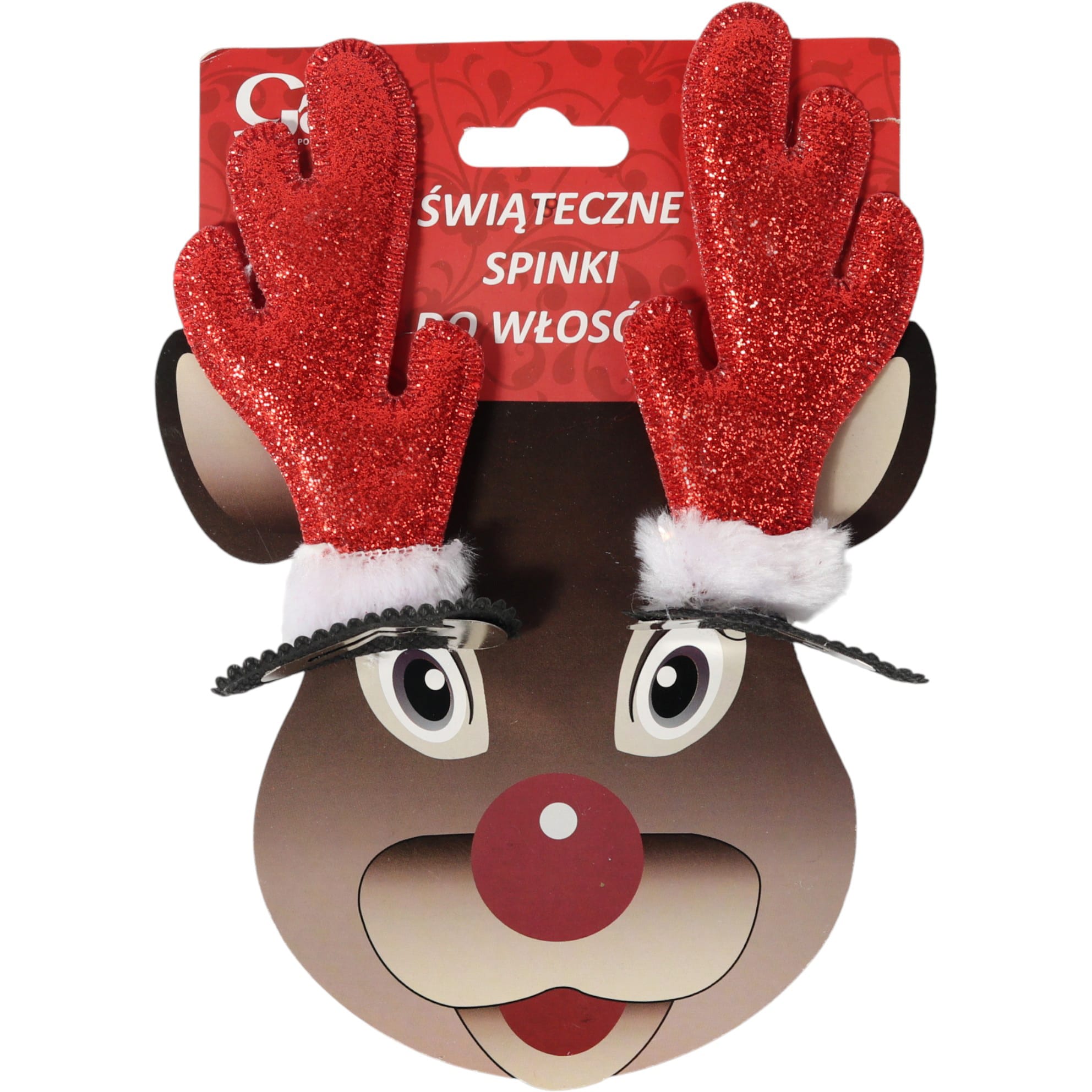 Spinki do włosów 2 szt świąteczne rogi Renifera 10 CM CZERWONE