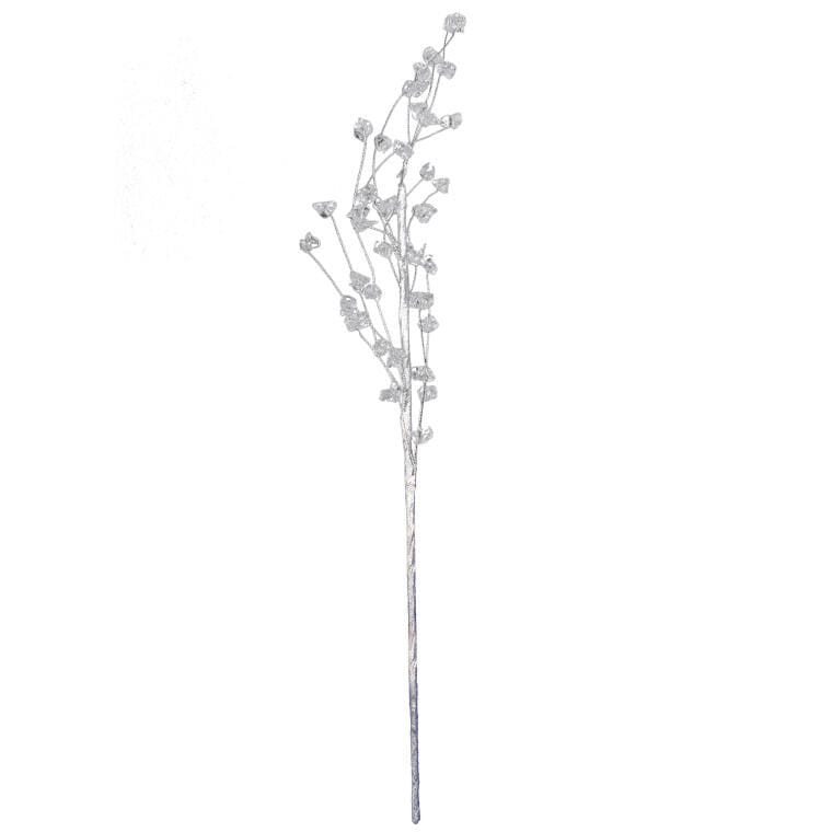 SREBRNA GAŁĄZKA DEKORACYJNA Z KRYSZTAŁKAMI 48 CM