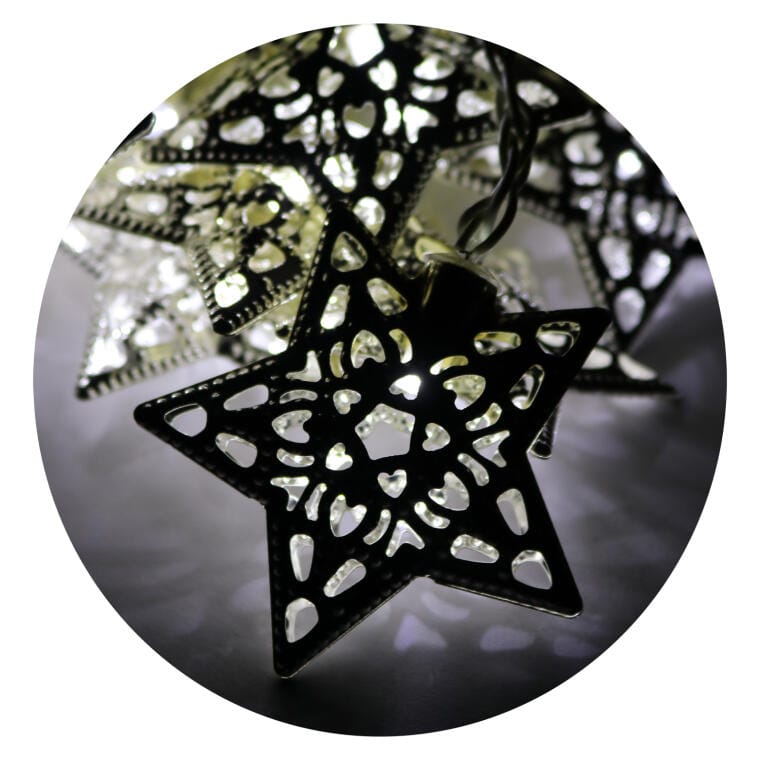 Prezentujemy eleganckie lampki LED w kształcie metalowych, ażurowych gwiazdek w kolorze srebrnym, idealne do dekoracji bożonarodzeniowych i innych okazji. Dzięki delikatnemu, białemu światłu i przezroczystemu przewodowi, lampki doskonale sprawdzą się jako ozdoba choinki, girlandy, czy też jako element dekoracji w szkle, nadając wnętrzu wyjątkowy, świąteczny klimat. Zasilane są bateriami 3xAA (niezałączone), co pozwala na swobodne rozmieszczenie ich w dowolnym miejscu bez potrzeby dostępu do gniazdka. Lampki przeznaczone są do użytku wewnętrznego (IP20), a ich długość wynosi 2,85 metra, co zapewnia wystarczającą długość do różnorodnych aranżacji. Te subtelne i stylowe lampki LED dodadzą blasku każdej dekoracji, tworząc ciepłą i przytulną atmosferę.