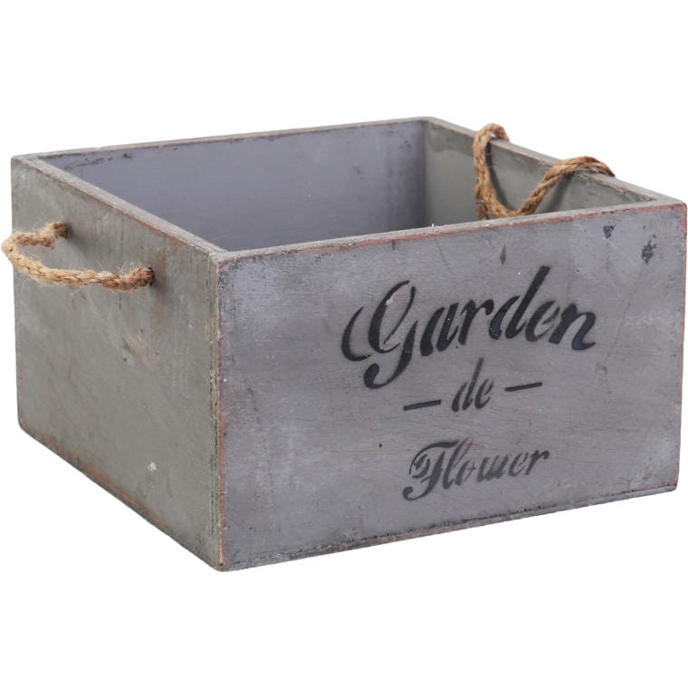 Średnia drewniana osłonka do kwiatów, celowo postarzana i wyposażona w dekoracyjne uchwyty z grubego sznura, to doskonały element wystroju, który wprowadzi naturalny, rustykalny charakter do każdego wnętrza, ogrodu lub balkonu. Ozdobiona stylowym napisem, idealnie podkreśla piękno wiosennych, zielonych roślin oraz aromatycznych ziół. Dzięki solidnemu wykonaniu z drewna, zapewnia trwałość i długotrwałe użytkowanie, a jej wygląd nie traci na jakości ani koloru przez wiele sezonów. Wymiary osłonki to 18 x 18 x 10,5 cm, a dostępność w trzech rozmiarach pozwala na dopasowanie jej do różnych kompozycji kwiatowych i przestrzeni. To funkcjonalny i estetyczny dodatek, który sprawdzi się zarówno w domu, jak i na zewnątrz, dodając stylu i uroku każdej aranżacji roślinnej.