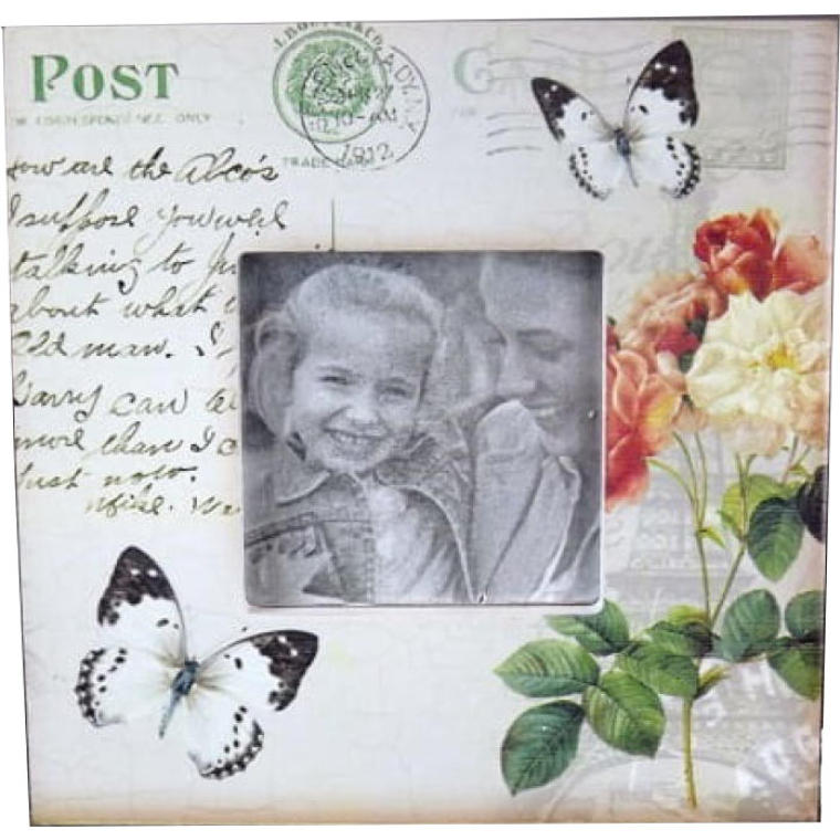 Stojąca ramka na zdjęcie z motywem kwiatowym i motylami 14,5×14,5cm