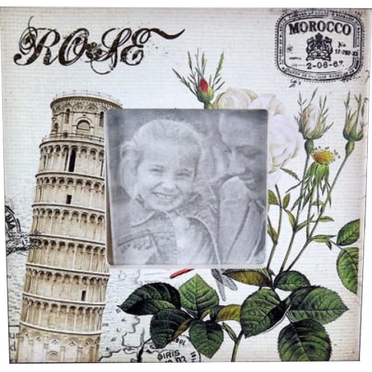 Stojąca ramka na zdjęcie z motywem kwiatowym i wieżą 14,5×14,5cm