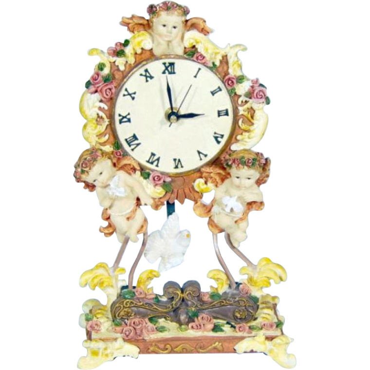 Stojący Zegar z Wachadłem Ozdobiony Aniołkami i Różyczkami