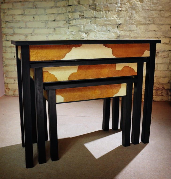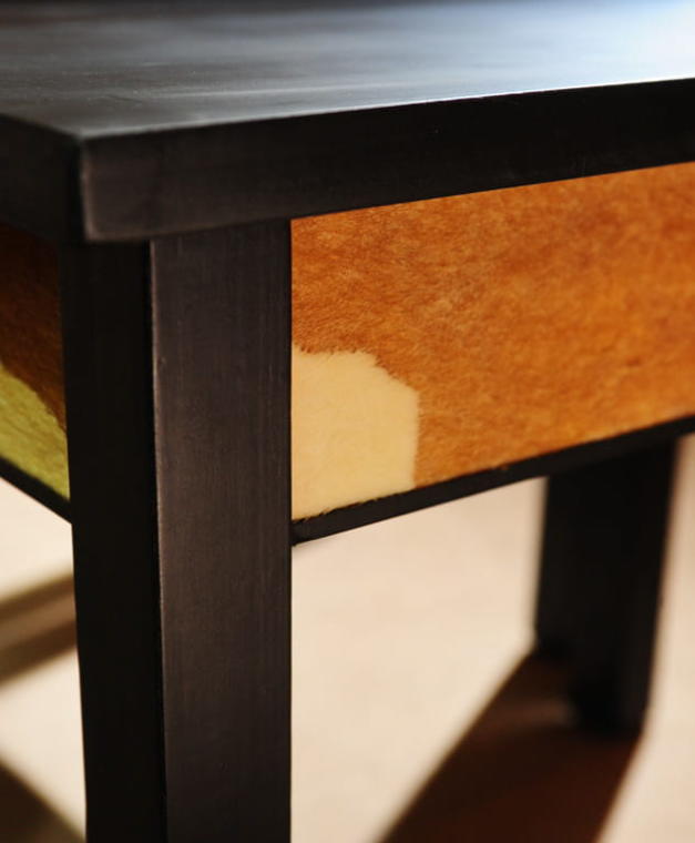 Stolik Drewniany Cielak w Kolorze Czarnym z Białym i Brązowym Akcentem