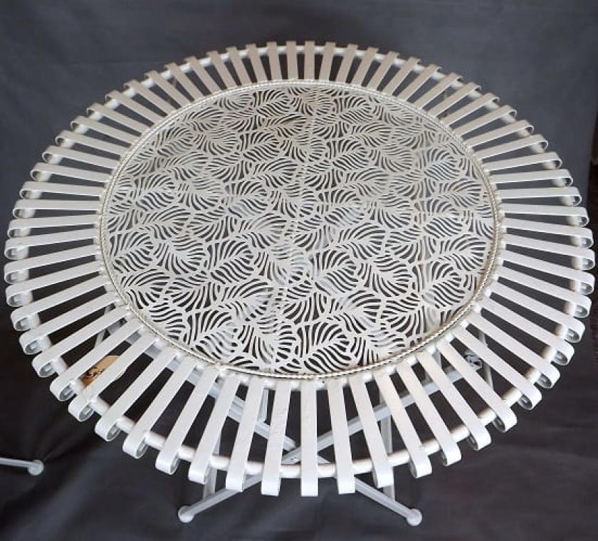 Ten elegancki mebel idealnie nadaje się do użytku zarówno w domu, jak i w ogrodzie czy na tarasie, tworząc przytulne miejsce do relaksu i spotkań. Kremowy stolik z metaloplastyki w stylu prowansalskim to doskonała inwestycja dla tych, którzy cenią sobie funkcjonalność, piękno oraz niepowtarzalny styl.