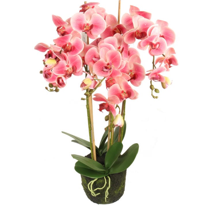 Storczyk gumowany w kolorze różowym z liśćmi 5 gałązek
