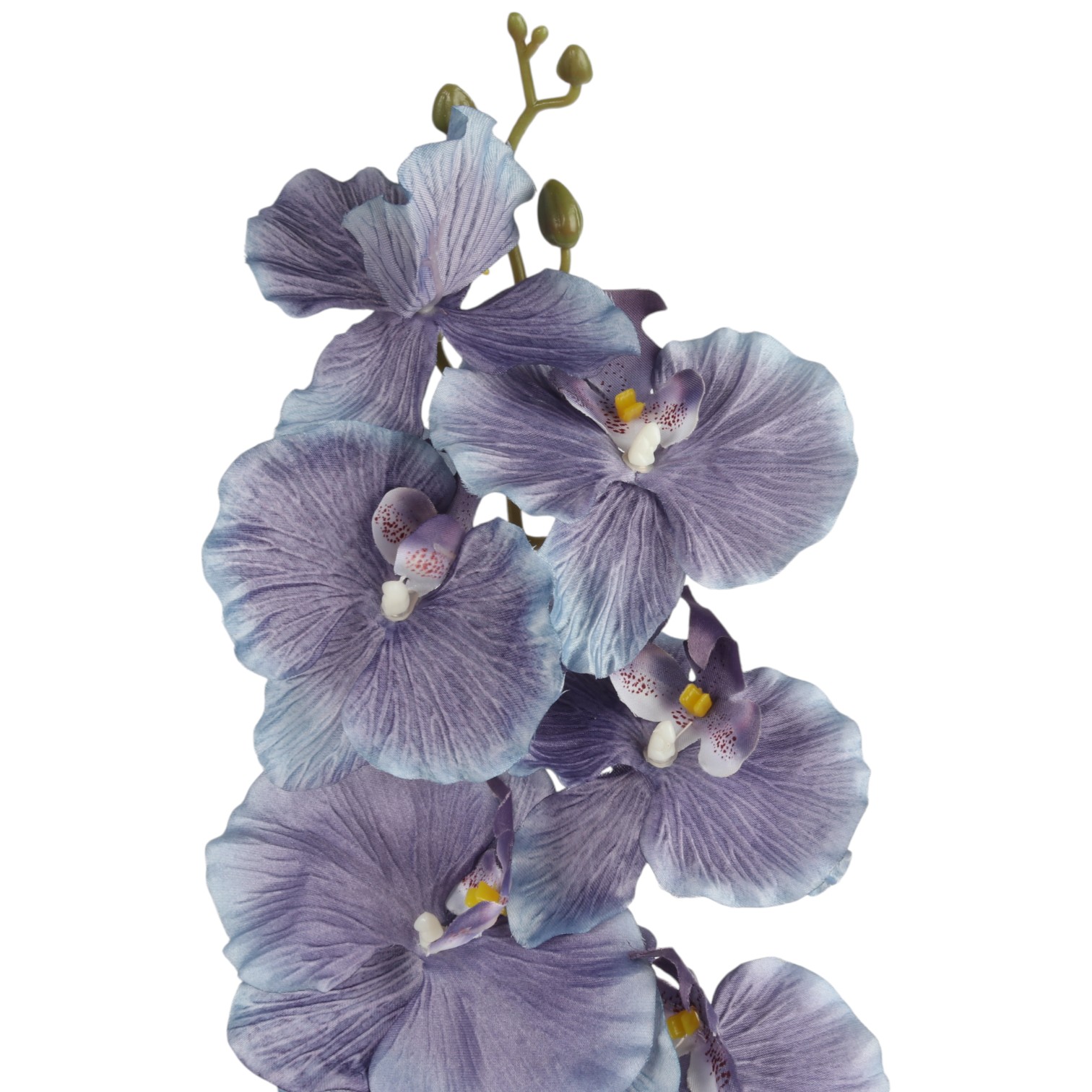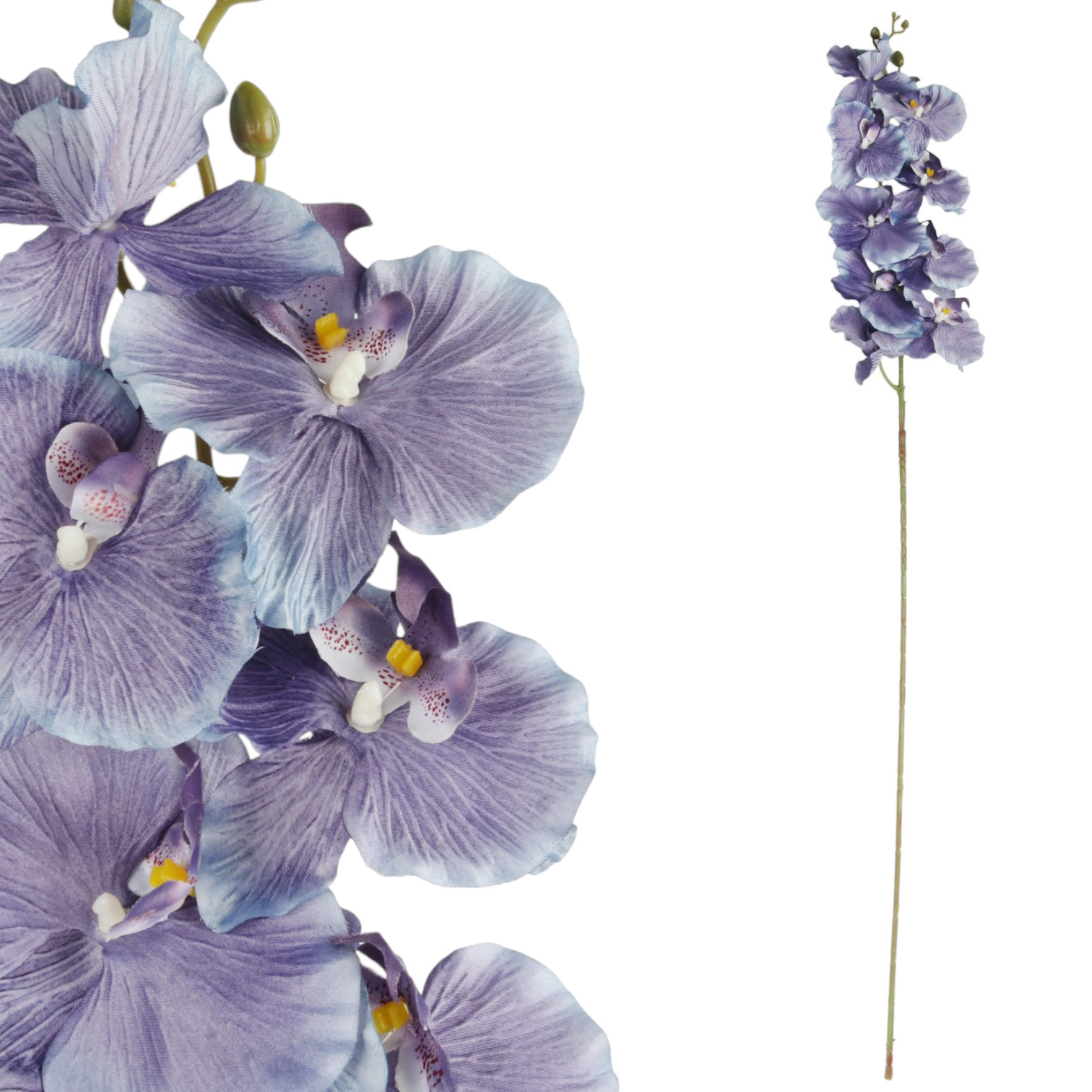 Sztuczna gałązka orchidei, to elegancka dekoracja wykonana z wysokiej jakości materiału, który sprawia, że kwiaty do złudzenia przypominają żywe. Idealna jako samodzielna ozdoba lub element kompozycji kwiatowych, wprowadza do wnętrza subtelny kolor i wyjątkowy urok. Trwała, estetyczna i efektowna, doskonale udekoruje salon, sypialnię, biuro lub restaurację.