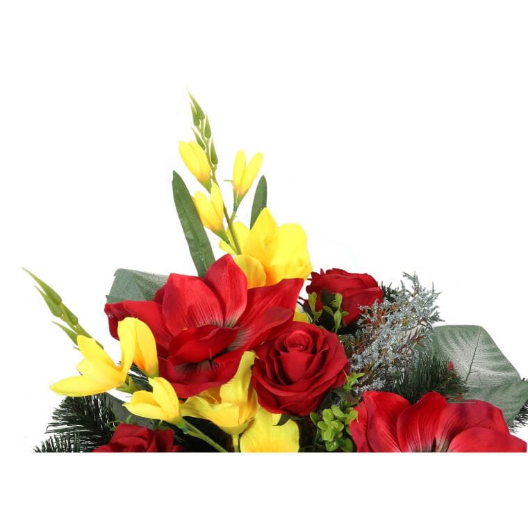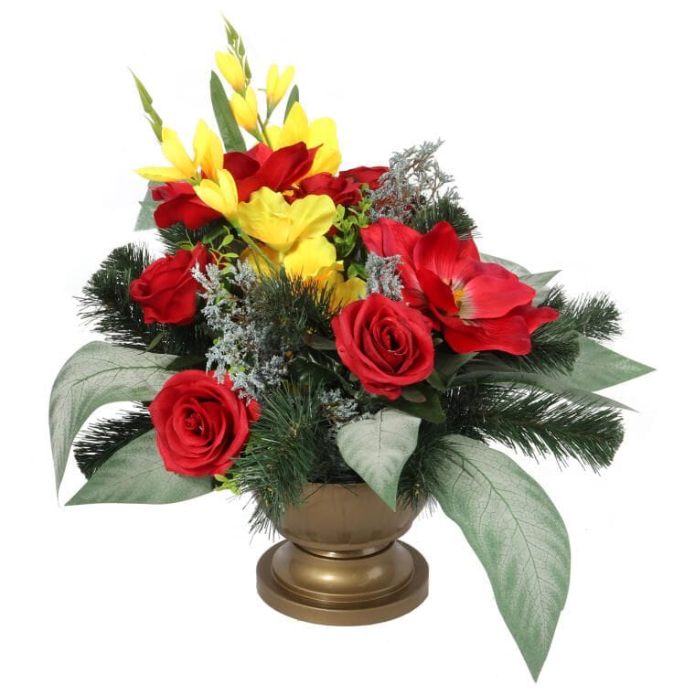 Stroik nagrobny nr 6 to elegancka, klasyczna kompozycja idealna do ozdobienia grobu bliskiej osoby. Wykonany z najwyższą starannością, doskonale wpasuje się w każde otoczenie, dodając pomnikowi uroku i podkreślając wyjątkowy charakter tego miejsca. Dzięki wysokiej jakości materiałom, stroik zapewnia długotrwałą trwałość, co sprawia, że będzie zdobił grób przez długi czas. Stonowana kolorystyka podkreśla elegancję i spokój, co jest kluczowe przy dekoracjach nagrobnych. Wymiary stroika to około 48 cm wysokości, 50 cm szerokości i 70 cm przekątnej. Każdy stroik jest tworzony indywidualnie, co może delikatnie wpływać na jego ostateczne wymiary w zależności od ułożenia kwiatów.