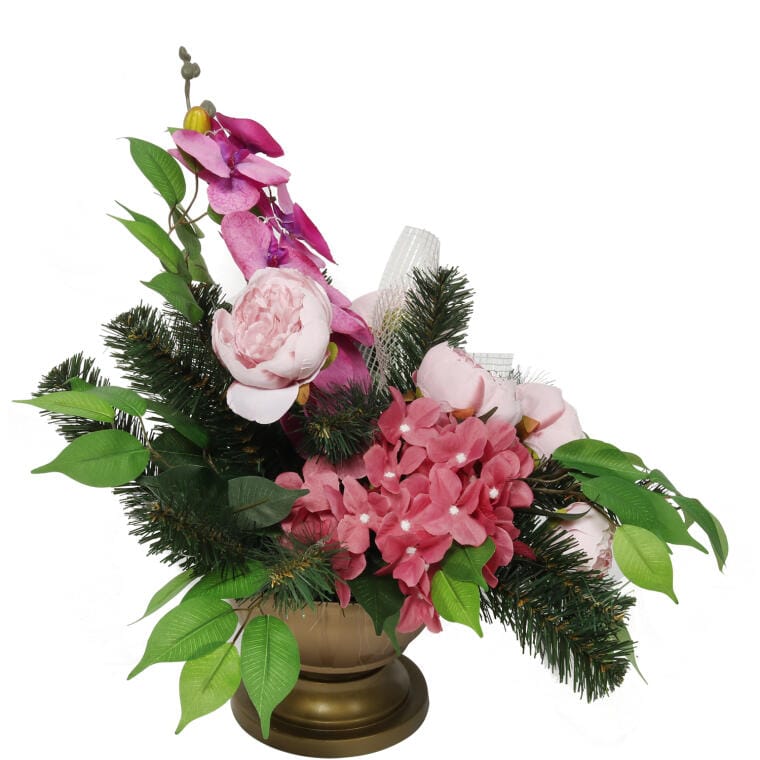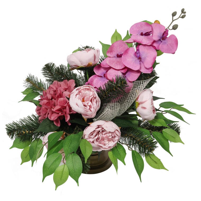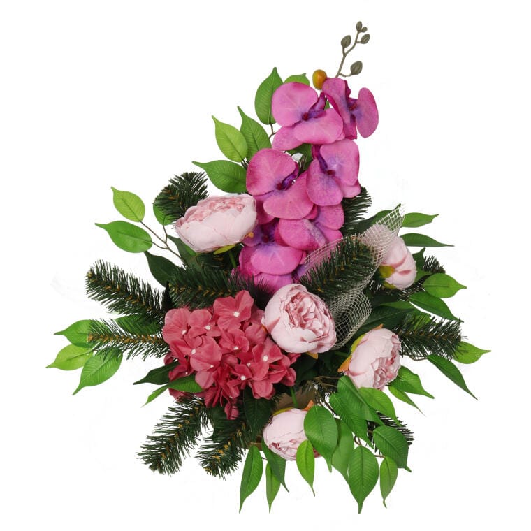 Stroik nagrobny II to elegancka kompozycja na grób bliskiej Ci osoby. Klasyka wykonania idealnie wpasuje się na każdy pomnik i doda uroku w ważnym dla Ciebie miejscu. Wysoka jakość wykonania gwarantuje długi okres trwałości produktu. Niech te miejsce w ważnym dla Ciebie dniu będzie jeszcze piękniejsze. Stroik wykonany został w stonowanych kolorach, jest to fundamentem prawidłowej dekoracji nagrobnej. Orientacyjne wymiary: Wysokość – ok. 45cm Szerokość – ok. 50cm Przekątna – ok. 67cm Pamiętaj, że każdy stroik tworzymy indywidualnie – wymiary mogą się delikatnie różnić w zależności od ułożenia kwiatów.