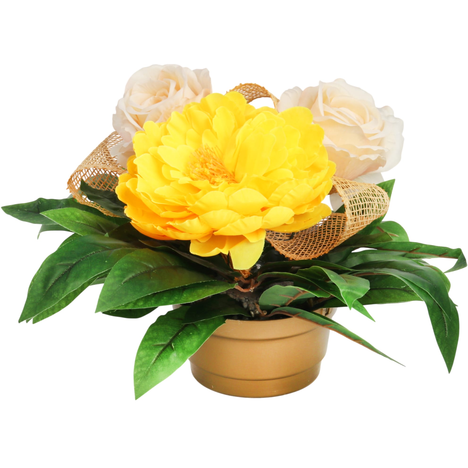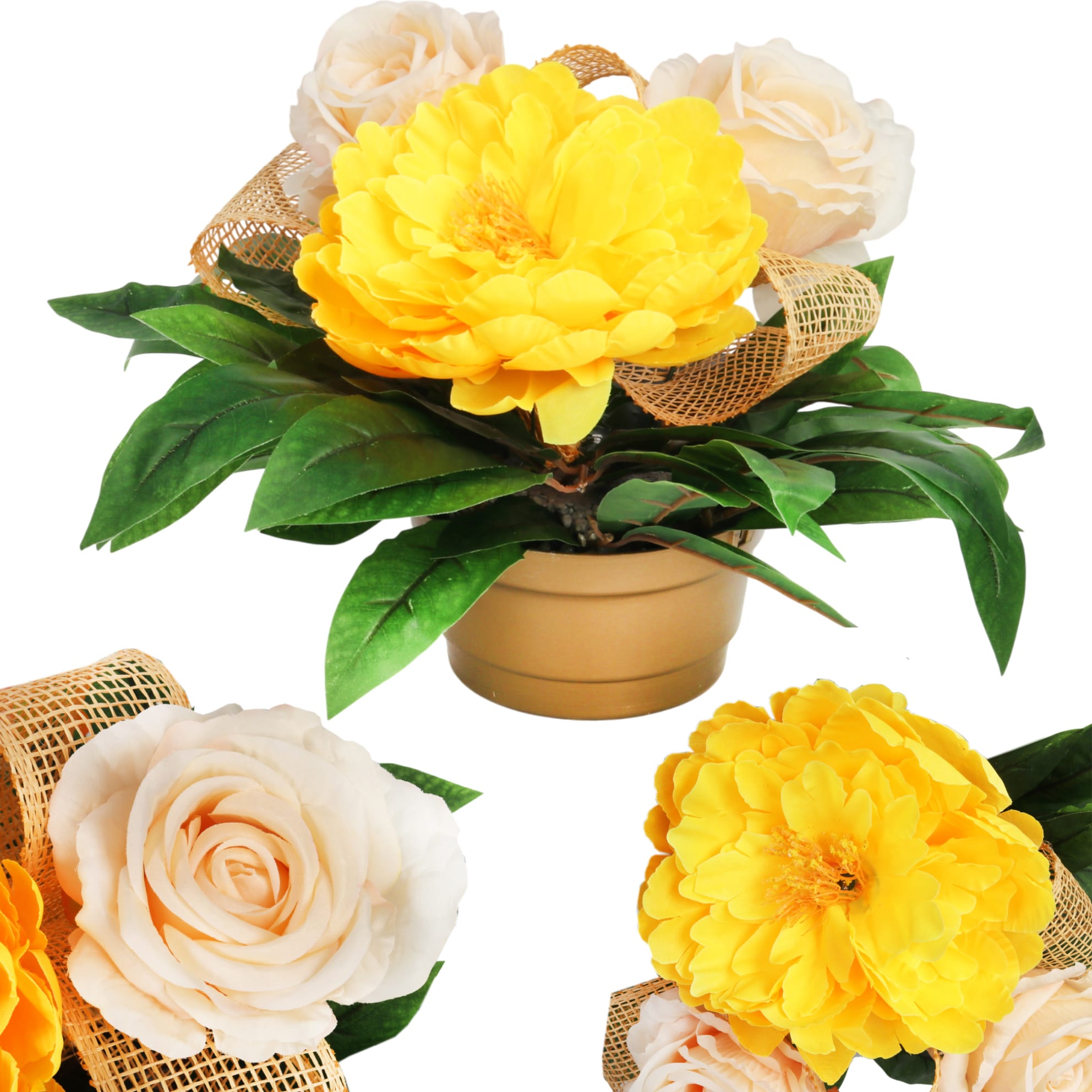 STROIK NAGROBNY Z PIWONIĄ I RÓŻAMI ŻÓŁTY