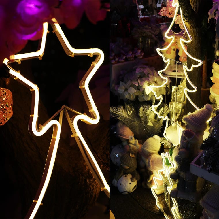 Świąteczna ozdoba LED NEON w kształcie choinki to stylowy i efektowny element dekoracyjny, idealny do podkreślenia świątecznego nastroju. Wykonana z miękkiego węża LED o długości 200 cm, emituje stałe ciepłe białe światło, które doskonale ożywia okna, balkony czy witryny sklepowe. Dzięki możliwości zawieszenia, ozdoba jest wszechstronna w zastosowaniu, a jej imponujące wymiary – 55 cm wysokości i 44 cm szerokości – sprawiają, że stanowi efektowny punkt dekoracyjny. Zasilana sieciowo, zapewnia wygodę użytkowania i jest doskonałym wyborem do podkreślenia magii świąt zarówno wewnątrz, jak i na zewnątrz.