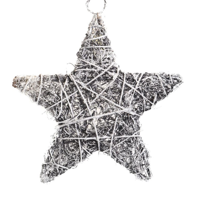 Świąteczna Gwiazda z Rattanu w Kolorze Srebrnym do Zawieszenia