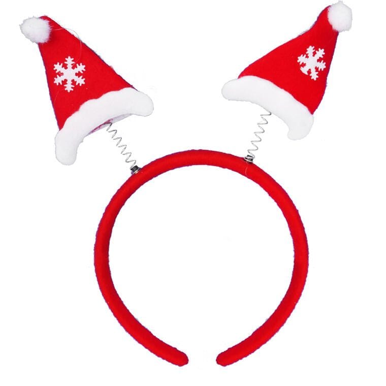 Świąteczna Opaska na Głowę z Czapeczkami na Sprężynkach – Czerwona, 22x12cm