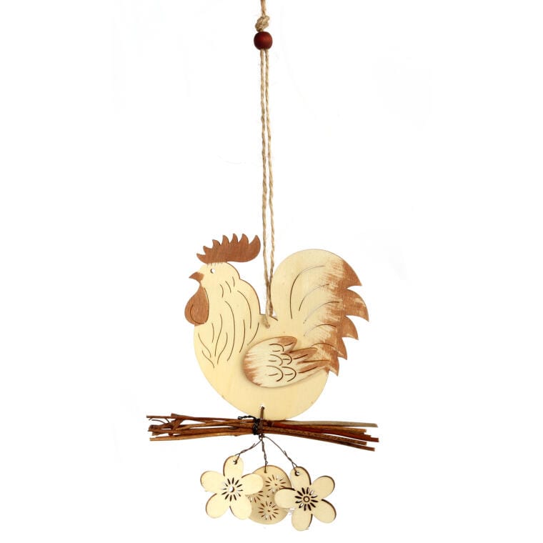 Świąteczna Zawieszka Drzewna w Kształcie Koguta z Kwiatami 15cm