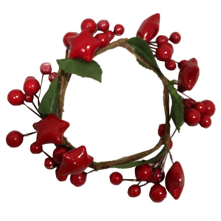 Świąteczny Stroik z Jarzębiny i Gwiazdek 15 cm – Czerwony