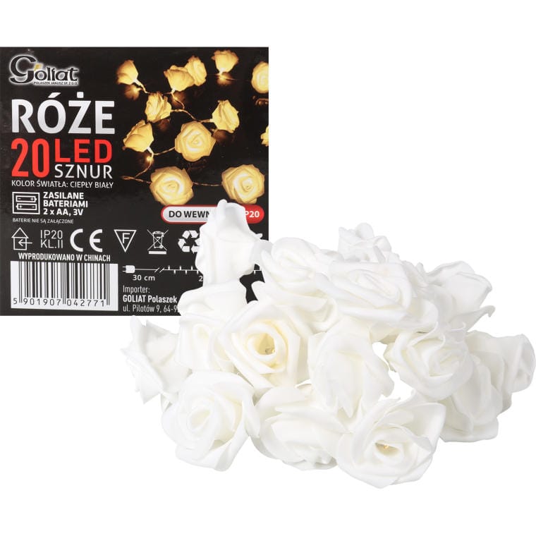 Świąteczny Sznur Ozdobny z Białymi Różami LED o Długości 3m