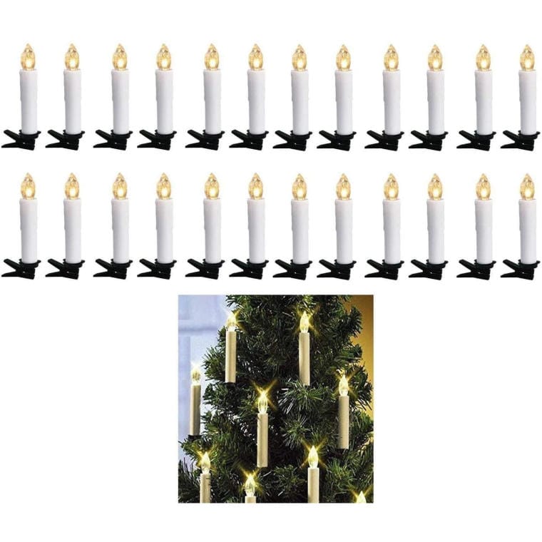 Świeczki LED na Klipsach do Choinki – 30 sztuk, Kabel Zielony, Długość 580 cm