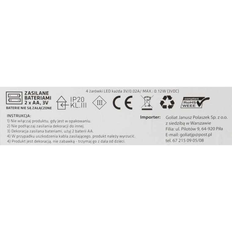 Dekoracja świetlna w postaci świecznika adwentowego w kolorze białym to idealny element, który wprowadzi wyjątkową atmosferę do Twojego wnętrza w czasie świąt. Zasilany dwiema bateriami AA, ten elegancki świecznik można swobodnie postawić na stole, kominku lub w innym wybranym miejscu, co czyni go niezwykle wszechstronnym dodatkiem. Jego minimalistyczny design w białym kolorze doskonale komponuje się z różnorodnymi aranżacjami, potęgując świąteczny nastrój i tworząc przytulną atmosferę podczas rodzinnych spotkań i uroczystości. Świecznik adwentowy nie tylko ozdobi przestrzeń, ale również wprowadzi ciepłe, delikatne światło, które umili chwile spędzone w gronie najbliższych. Wybierz ten urokliwy dodatek, aby uczynić te święta niezapomnianymi!