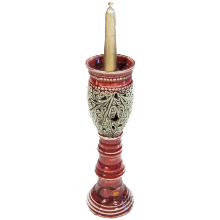 Ten elegancki świecznik ceramiczny w głębokim bordowym kolorze z ażurowym, zielonym dekorem to idealny element dekoracyjny, który doda ciepła i stylu każdemu wnętrzu. Jego wysokość wynosząca 27 cm oraz średnica 9 cm sprawiają, że doskonale nadaje się do postawienia na stole, komodzie czy na parapecie, tworząc przytulną atmosferę. Świecznik jest dostarczany w komplecie ze świeczką, co ułatwia jego natychmiastowe użycie. Ażurowy wzór w zielonym kolorze dodaje lekkości i wyjątkowego charakteru, czyniąc ten świecznik doskonałym wyborem zarówno do codziennej aranżacji, jak i na specjalne okazje. Idealnie sprawdzi się jako dekoracja na stół podczas rodzinnych spotkań, romantycznych kolacji czy w czasie świątecznych uroczystości. To piękne połączenie kolorów i wzorów wprowadzi do Twojego domu harmonię oraz subtelny urok.