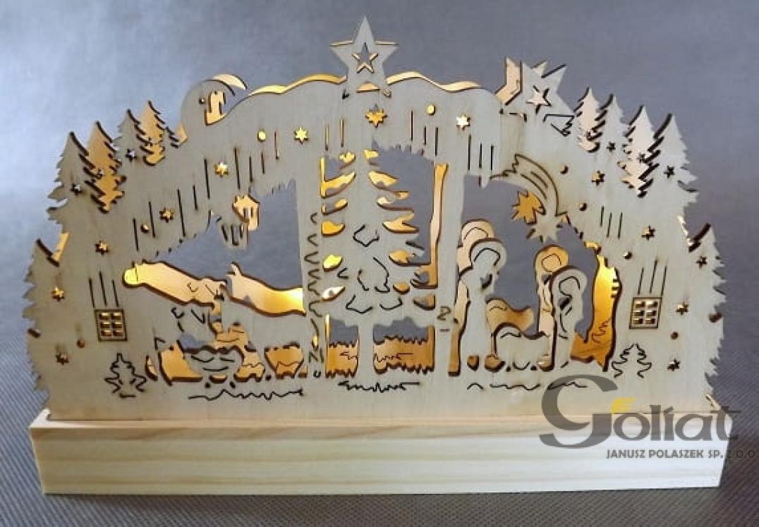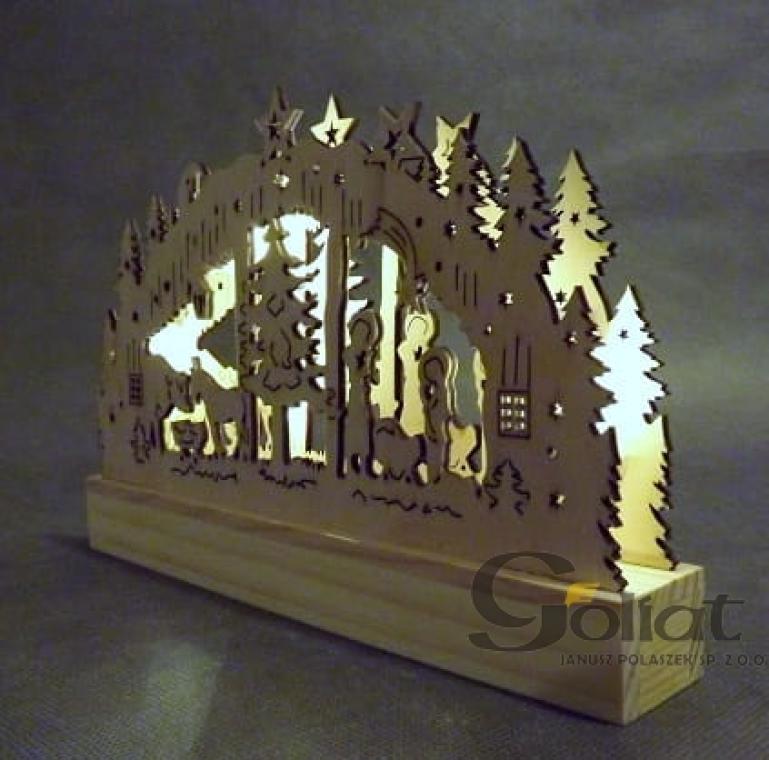 Świecznik Drewniany LED w Kształcie Szopki Bożonarodzeniowej