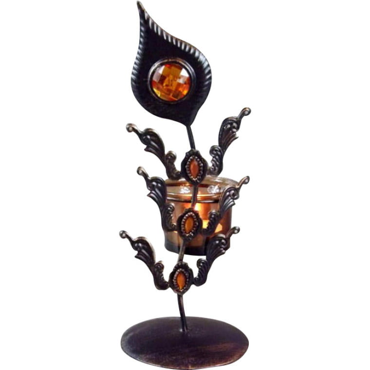 Świecznik Metalowy z Szklanymi Elementami i Kieliszkiem na Świeczkę 25×10 cm