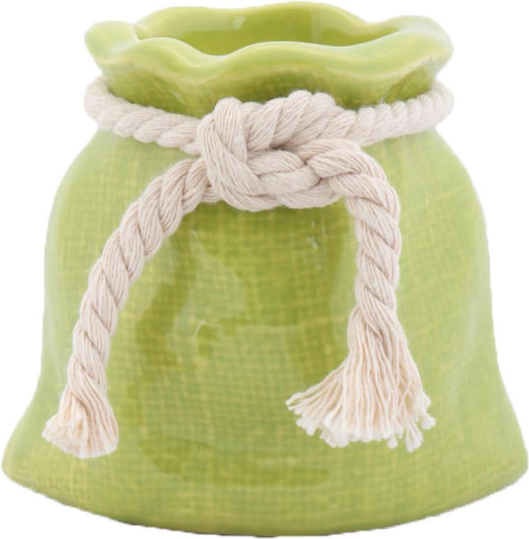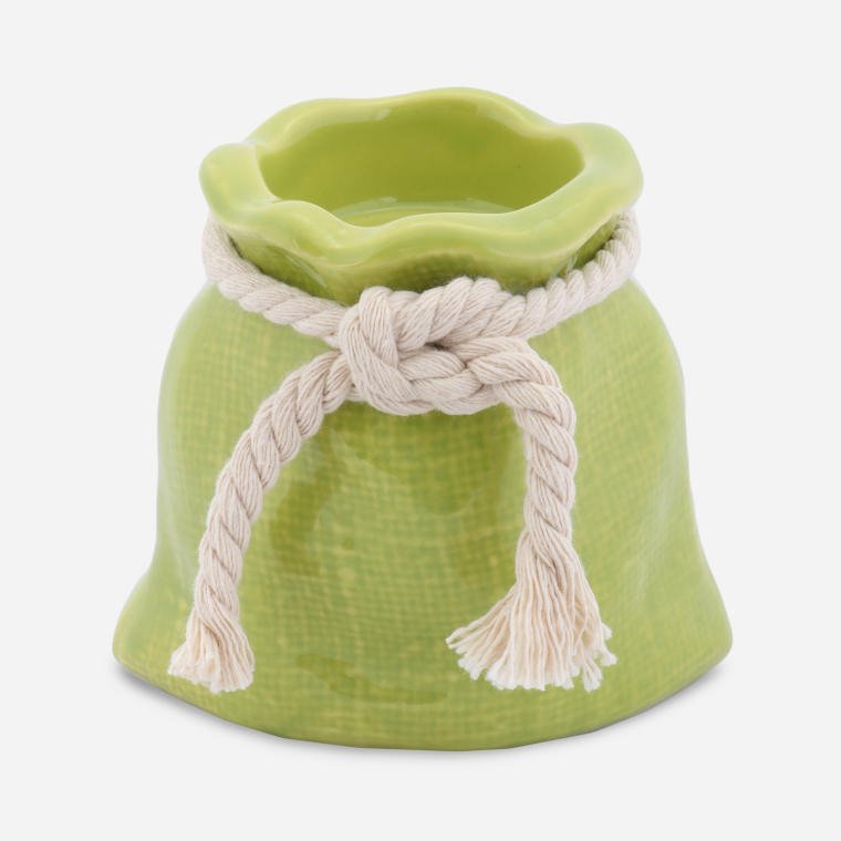Świecznik Sakiewka Ceramiczny w Kolorze Zielonym z Sznurkiem