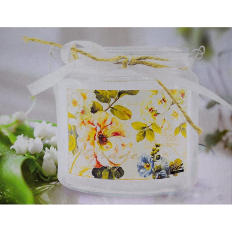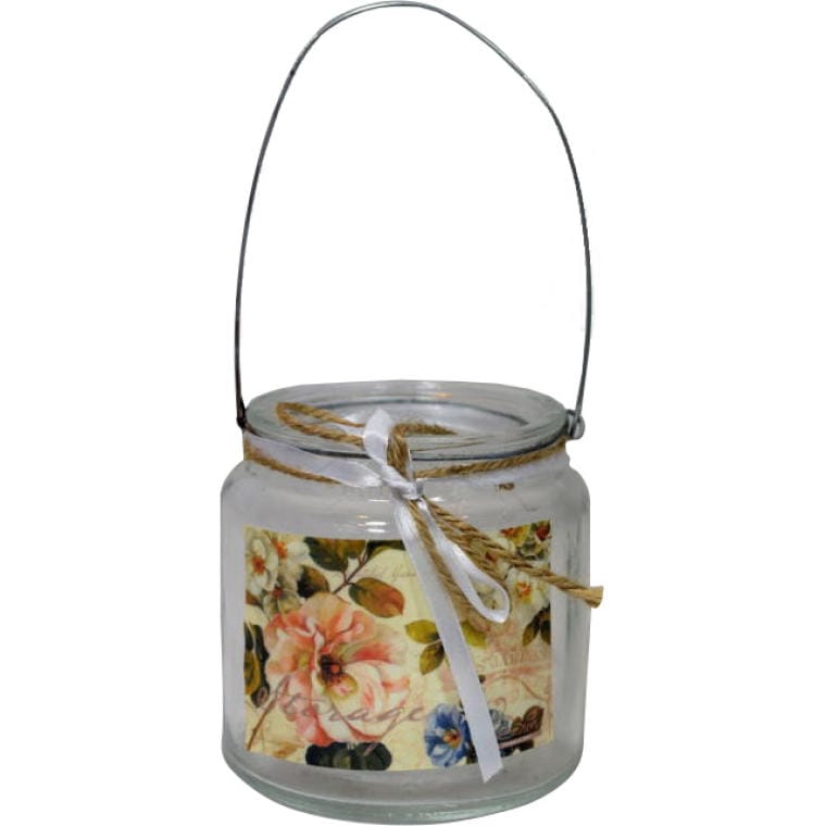 Świecznik szklany z uchwytem i kwiatowym motywem
