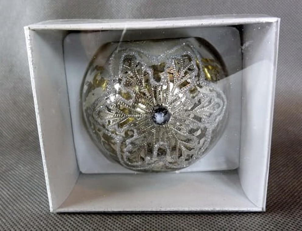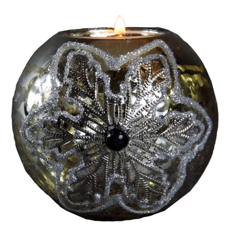 Świecznik Szklany Zdobiony Brokatem w Kolorze Starego Srebra – 7x8cm