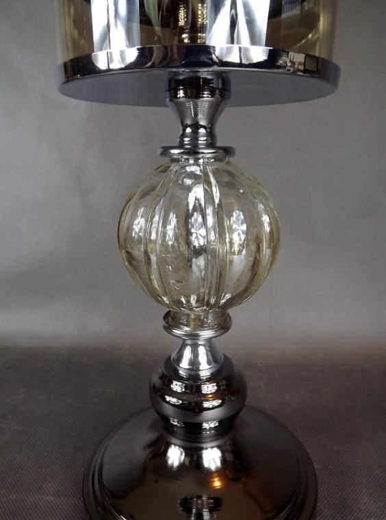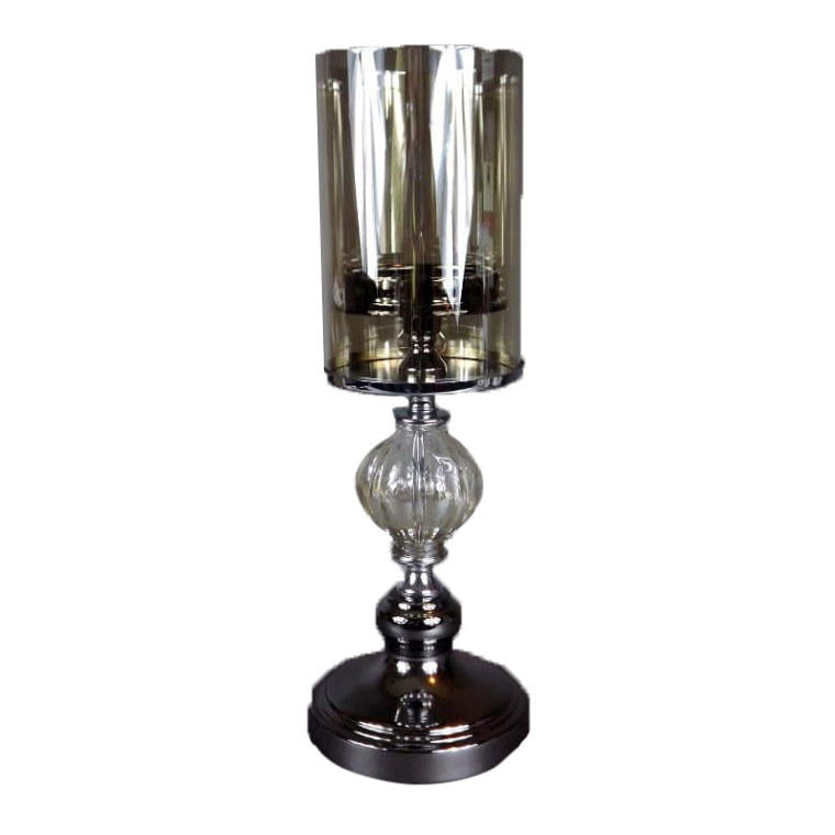 Świecznik wykonany z chromu w kolorze grafitowym oraz przydymionego szkła 15×41 cm