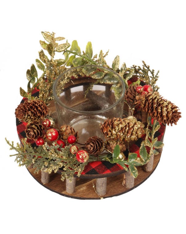 Świecznik z naturalnymi elementami dekoracyjnymi i szklanym pojemnikiem, 24 cm