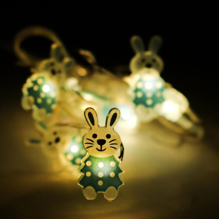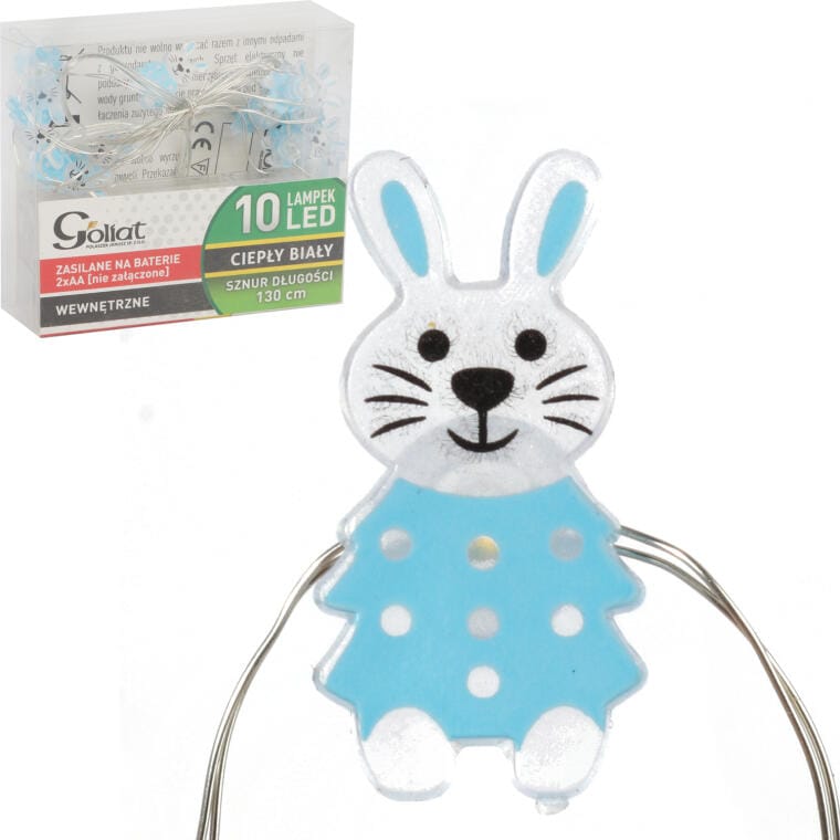 Świetlna Girlanda Wielkanocna Zajaczki 10 LED – Niebieska, Ozdoba Zewnętrzna i Wnętrzna, Zasilana na Baterie