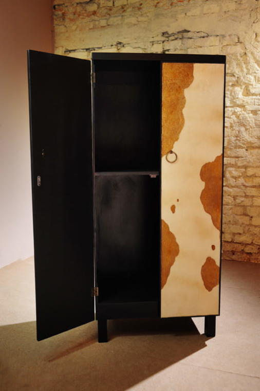 Szafa z imitacją sierści cielaka w kolorze biało-brązowym 134.5x60x38 cm