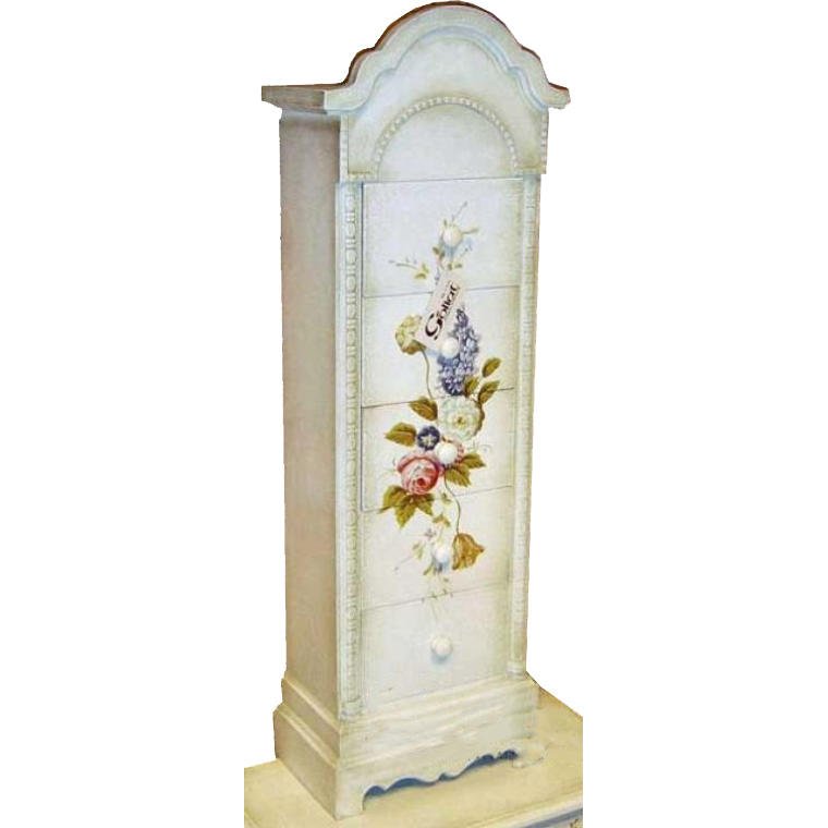 Szafka w stylu prowansalskim z efektem postarzałej farby i ręcznie malowanymi kwiatami