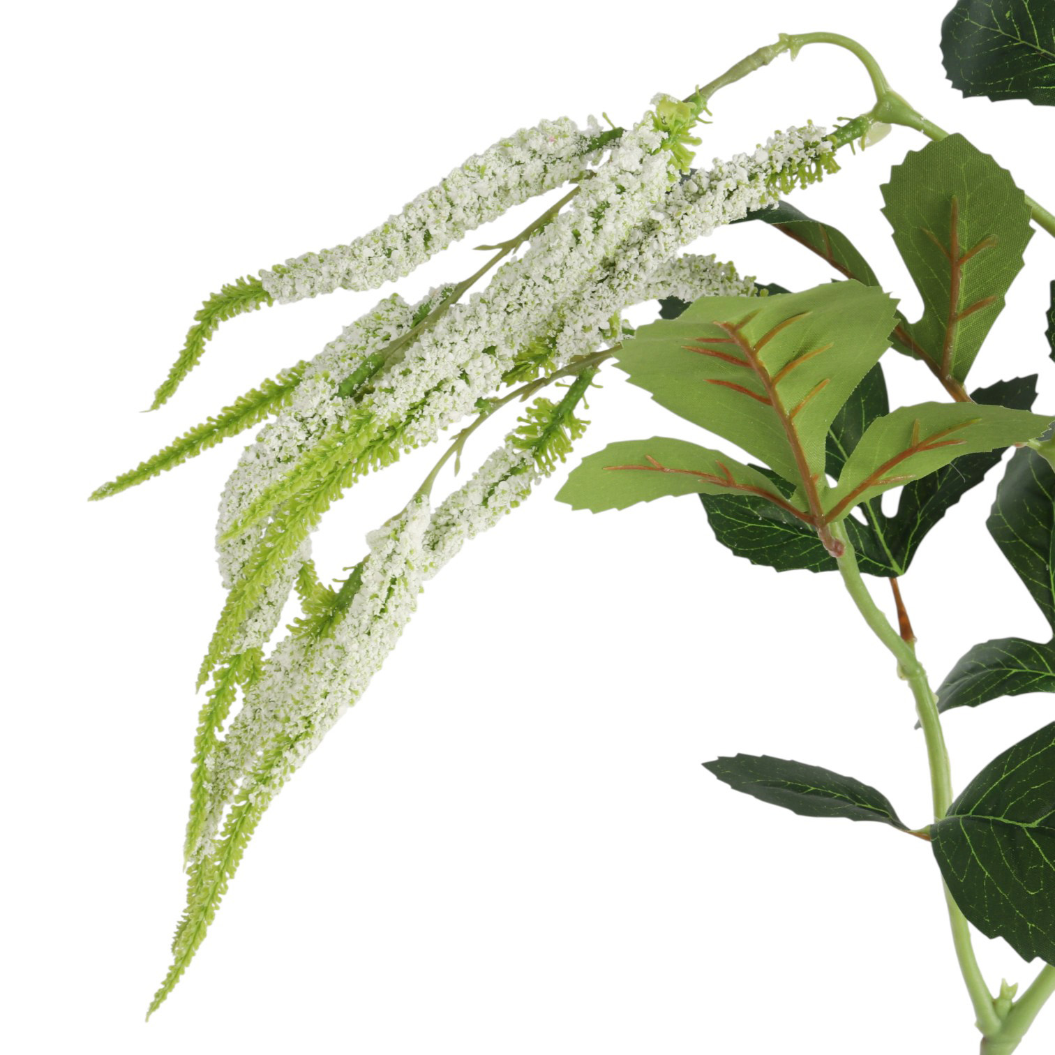 Sztuczna gałązka -SZARŁAT ZWISŁY, to elegancka dekoracja wykonana z wysokiej jakości materiału, który sprawia, że kwiaty do złudzenia przypominają żywe. Idealna jako samodzielna ozdoba lub element kompozycji kwiatowych, wprowadza do wnętrza subtelny kolor i wyjątkowy urok. Trwała, estetyczna i efektowna, doskonale udekoruje salon, sypialnię, biuro lub restaurację. Wysokość: 94 cm.