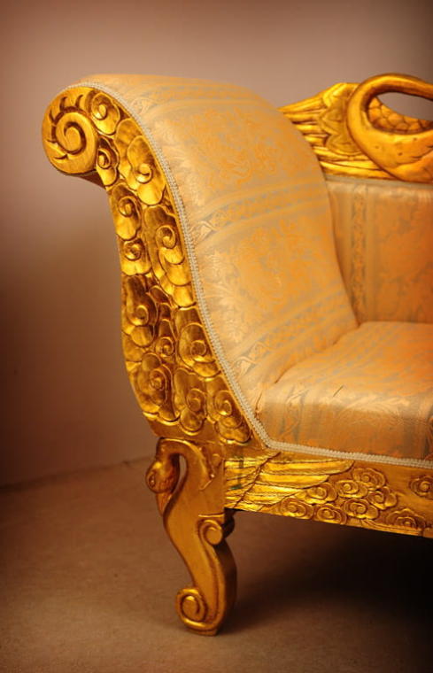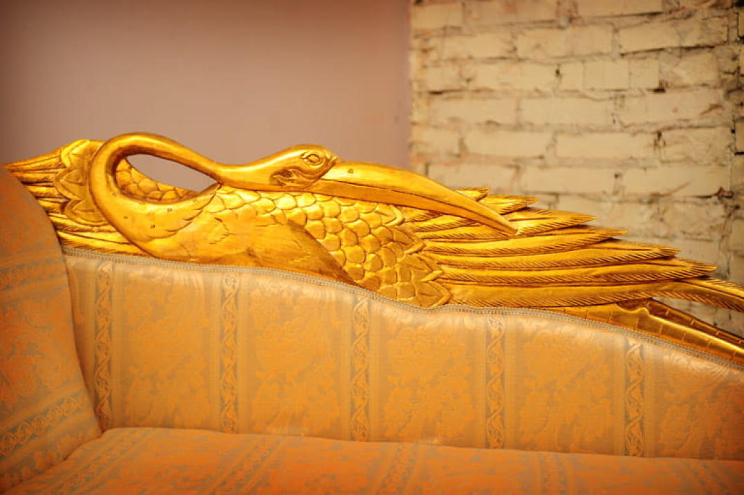 Prezentujemy niezwykle stylowy szezlong, który doskonale łączy elegancję z artystycznym rzemiosłem. Wykonany z ręcznie rzeźbionego drewna w kolorze złotym, ten mebel emanuje luksusem i wyrafinowaniem. Kremowo-oliwkowa tapicerka nie tylko dodaje mu subtelności, ale także wprowadza ciepło i przytulność do każdego wnętrza. Co więcej, wyrzeźbione motywy ptaków, delikatnie zdobiące siedzisko, nadają mu wyjątkowego uroku oraz sprawiają, że szezlong staje się prawdziwą ozdobą każdego pomieszczenia. O wymiarach 166 cm długości, 64 cm szerokości i 83 cm wysokości, ten szezlong jest idealnym wyborem zarówno do przestronnych salonów, jak i eleganckich gabinetów, gdzie stanie się doskonałym miejscem do relaksu. Usiądź wygodnie, zanurz się w chwilach odprężenia i ciesz się stylem, który ożywi Twoje wnętrze.