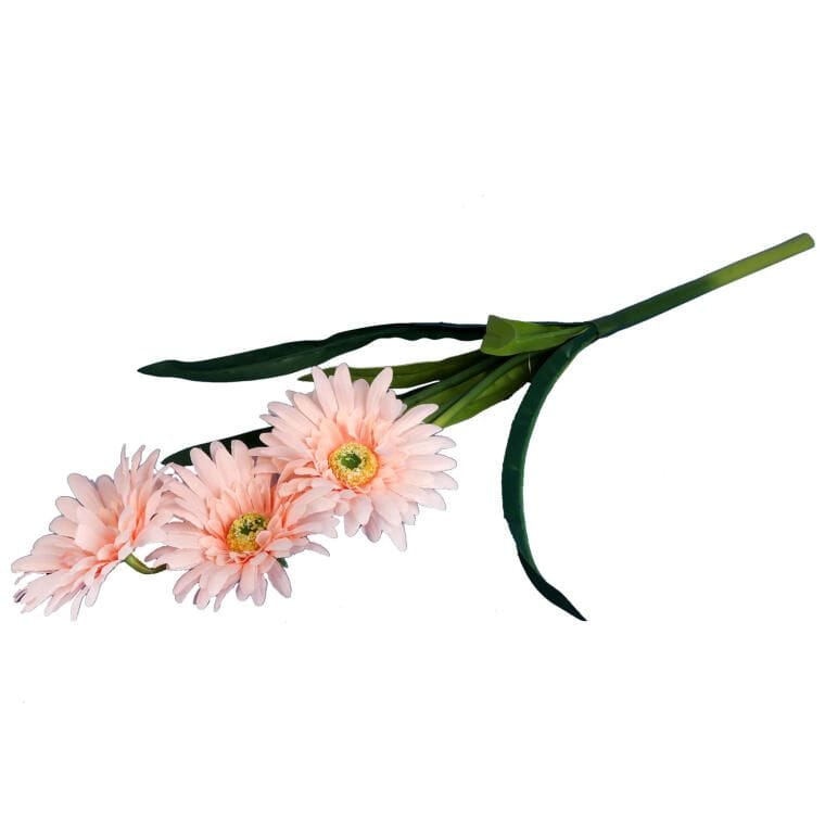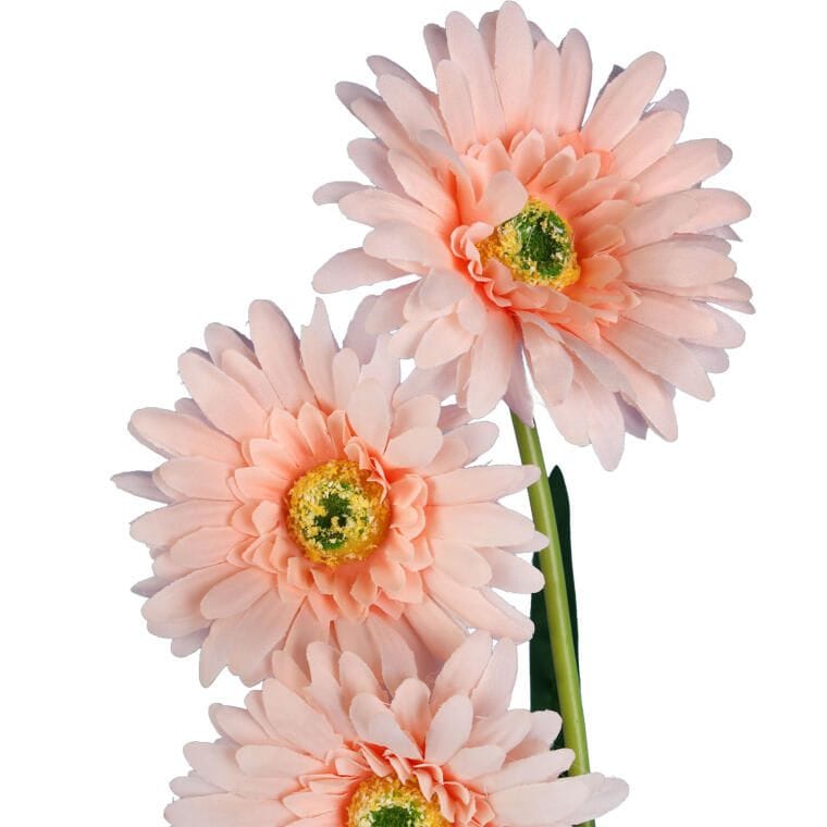 Sztuczna gałązka z trzema gerberami w subtelnym łososiowym odcieniu to elegancka dekoracja, która zachwyca realistycznym wyglądem. Starannie wykonane płatki i naturalnie odwzorowane detale sprawiają, że kwiaty wyglądają jak żywe. Doskonale sprawdzi się jako samodzielna ozdoba w wazonie lub element większej kompozycji florystycznej, dodając wnętrzu lekkości i świeżości. Trwałość materiału gwarantuje piękny wygląd na długi czas.