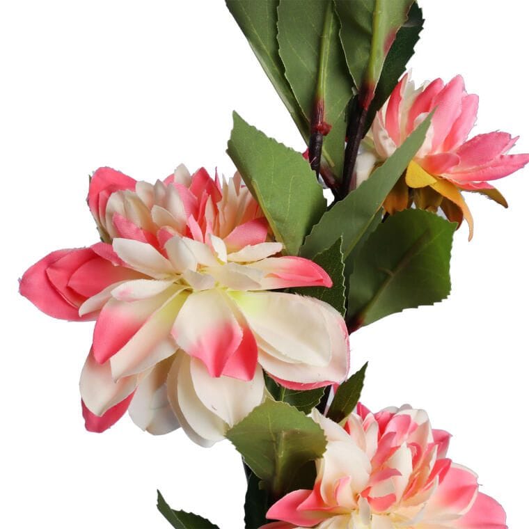 Sztuczna gałązka kwiatów Dalii w kolorze RÓŻOWO BIAŁA 93 cm