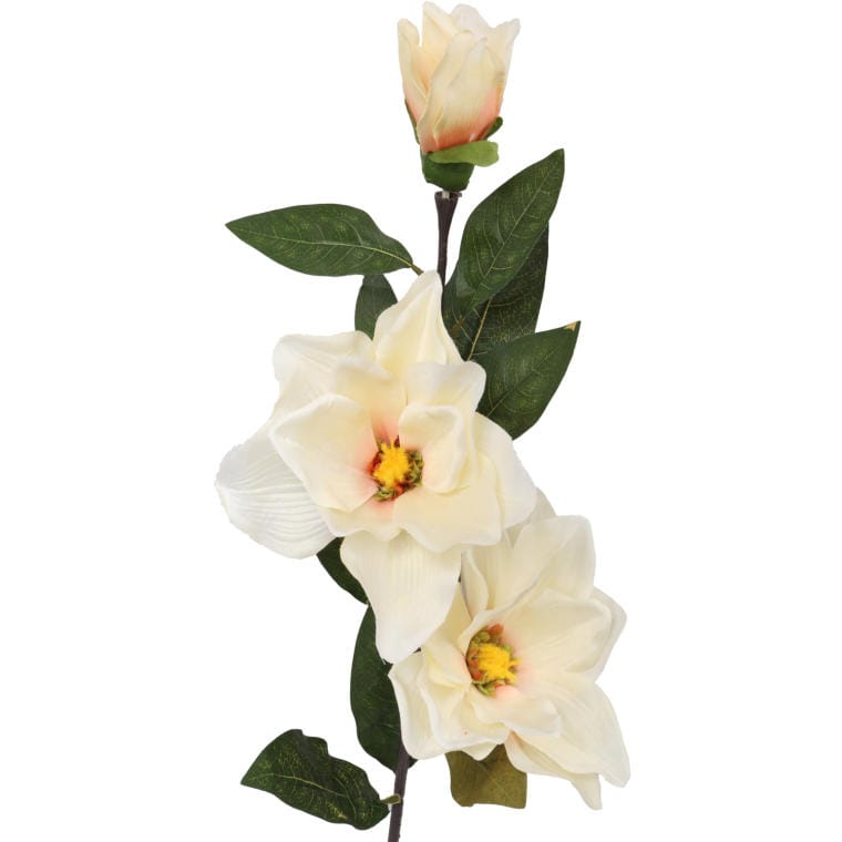 Sztuczna Gałązka Magnolii Kremowej – 3 Kwiaty, Długość 78 cm