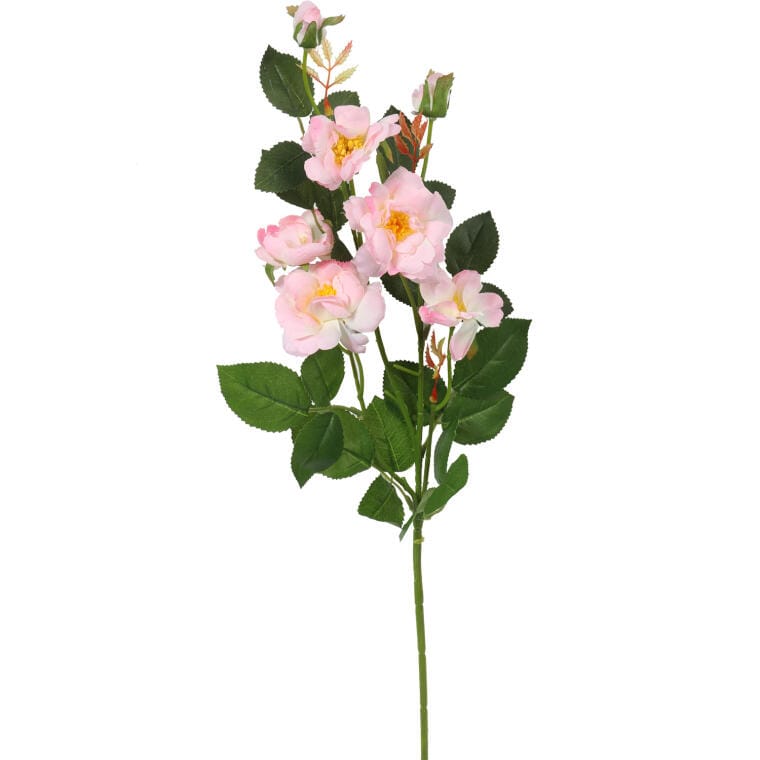 Sztuczna Gałązka Róż w Kolorze Jasno Różowym (5 Róż + 2 Pąki, 72 cm)