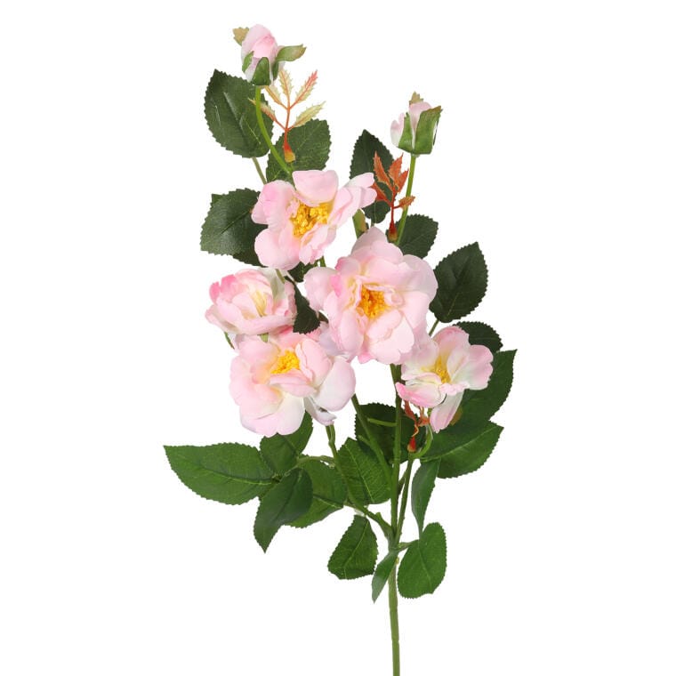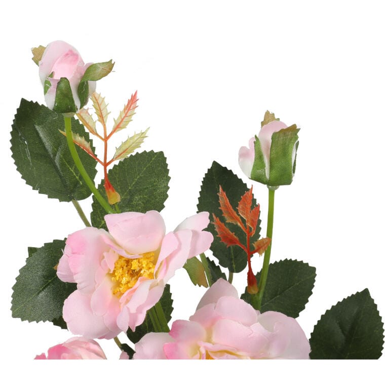Sztuczna gałązka róż składająca się z pięciu pełnych kwiatów oraz dwóch delikatnych pąków w subtelnym, jasnoróżowym odcieniu to elegancka i wyrafinowana dekoracja, która dzięki zastosowaniu materiałów najwyższej jakości wiernie oddaje naturalny wygląd świeżych kwiatów. Staranna dbałość o detale sprawia, że róże do złudzenia przypominają żywe, wprowadzając do wnętrza nutę romantyzmu i subtelnego piękna. Idealnie sprawdzą się zarówno jako samodzielna ozdoba, jak i w większych kompozycjach florystycznych, nadając pomieszczeniom świeżości i delikatnej elegancji. Z wysokością 72 cm, ta sztuczna róża świetnie pasuje do wazonów, bukietów oraz innych aranżacji, podkreślając styl i przytulność przestrzeni.