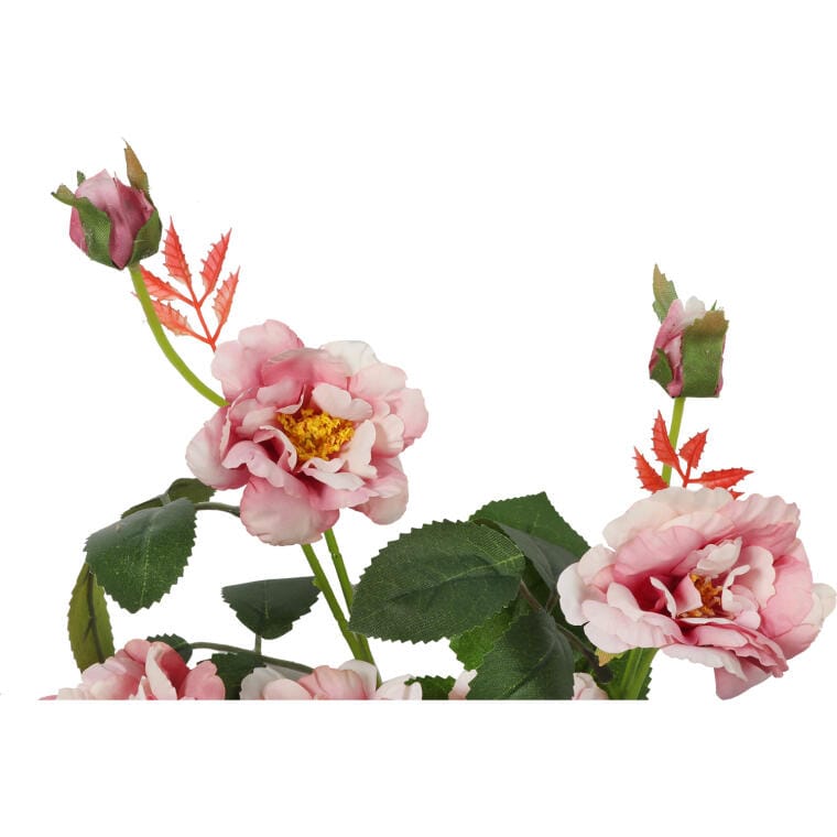 Sztuczna gałązka róż z pięcioma kwiatami i dwoma delikatnymi pąkami w subtelnym, pudrowo różowym kolorze to elegancka ozdoba, która dzięki użyciu najwyższej jakości materiałów do złudzenia przypomina żywe kwiaty. Starannie odwzorowane detale, takie jak struktura płatków i realistyczny wygląd, sprawiają, że róże prezentują się naturalnie i stylowo. Idealnie nadają się zarówno jako samodzielna dekoracja, jak i element większych kompozycji florystycznych, wprowadzając do wnętrza romantyzm i subtelną elegancję. Gałązka o wysokości 72 cm doskonale sprawdzi się w wazonach, bukietach oraz innych aranżacjach, dodając wnętrzu wyrafinowanego charakteru i lekkości.