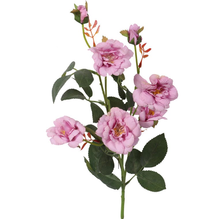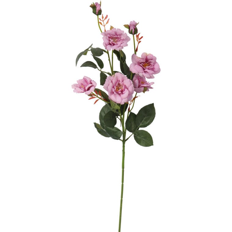Sztuczna gałązka róż z pięcioma kwiatami i dwoma pąkami w eleganckim, fioletowym kolorze to wyjątkowa dekoracja, która dzięki wysokiej jakości materiałom do złudzenia przypomina żywe kwiaty. Precyzyjnie odwzorowane detale, takie jak faktura płatków oraz realistyczny wygląd pąków, sprawiają, że róża prezentuje się niezwykle autentycznie, wprowadzając do wnętrza odrobinę magii i stylu. Idealnie sprawdzi się zarówno jako samodzielna ozdoba, jak i w złożonych kompozycjach florystycznych, dodając przestrzeni kolorystycznego wyrazu i elegancji. Gałązka o wysokości 72 cm doskonale nadaje się do wazonów, bukietów oraz innych aranżacji, podkreślając estetykę i przytulność każdego pomieszczenia.
