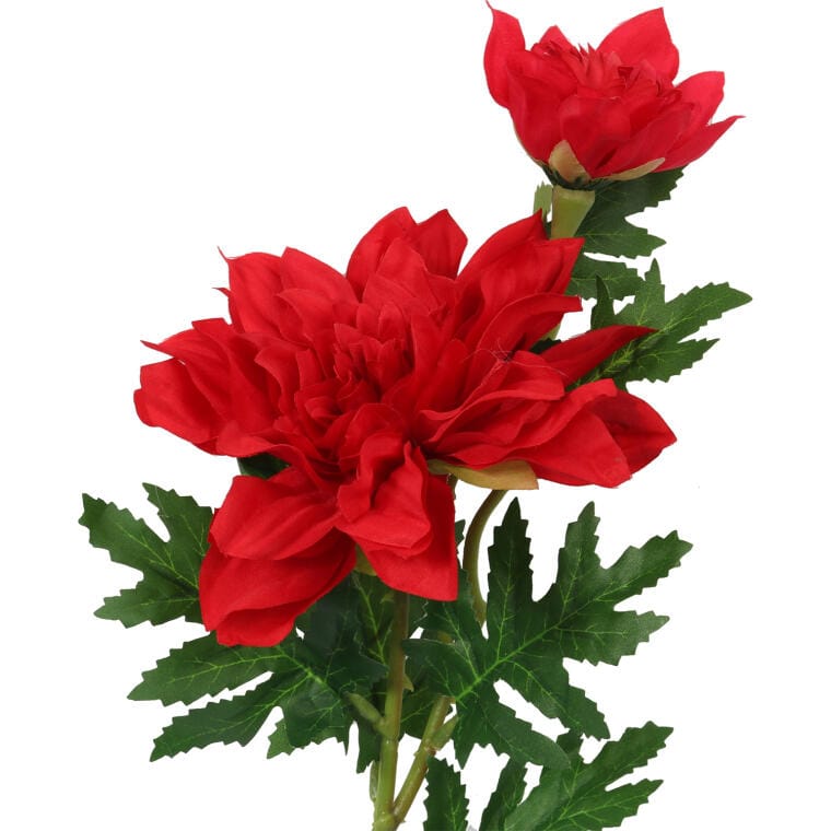 Gałązka sztucznego kwiatu z dwiema daliami w intensywnym czerwonym kolorze to doskonała dekoracja, która doda wyrazistości i elegancji każdemu wnętrzu. Dzięki zastosowaniu materiałów o wysokiej jakości, ta efektowna gałązka doskonale imituje naturalne kwiaty, co sprawia, że staje się nie tylko atrakcyjnym akcentem, ale również wszechstronnym elementem wystroju. O wysokości 66 cm, gałązka świetnie sprawdzi się jako samodzielny element dekoracyjny lub w ramach większych kompozycji florystycznych. Czerwony odcień dalii wnosi do przestrzeni energię i radość, tworząc przytulną atmosferę w Twoim otoczeniu. Wybierz tę sztuczną gałązkę dalii jako trwały akcent, który ożywi Twoje wnętrze i nada mu niepowtarzalny charakter.