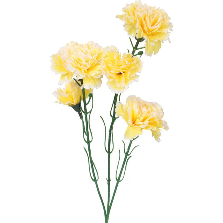 Sztuczna Gałązka z Pięcioma Jasno-Żółtymi Goździkami o Długości 68 cm