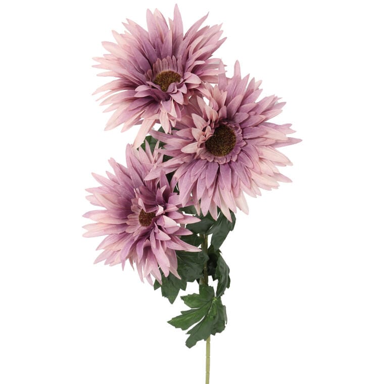 Sztuczna gałązka z trzema fioletowymi gerberami – dekoracja o wysokości 80 cm