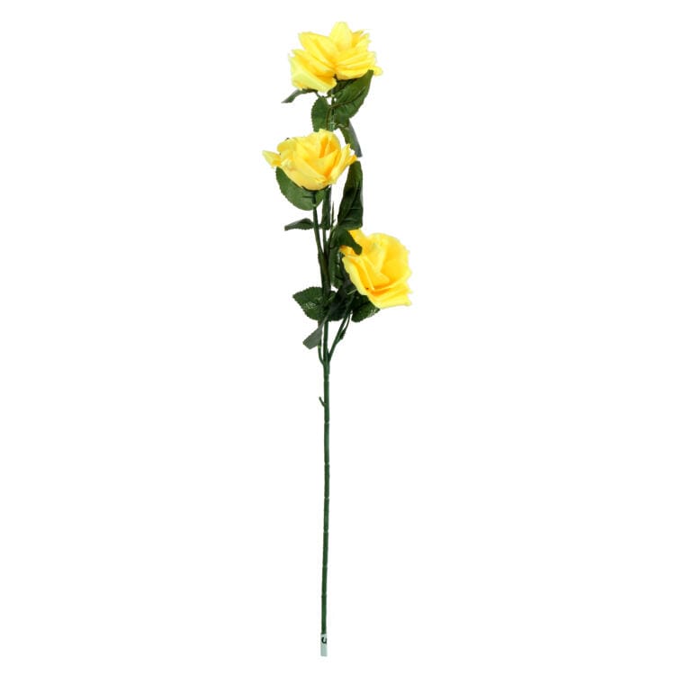 Sztuczna Gałązka z Trzema Żółtymi Różami – Dekoracja Wnętrz, Wysokość 68 cm