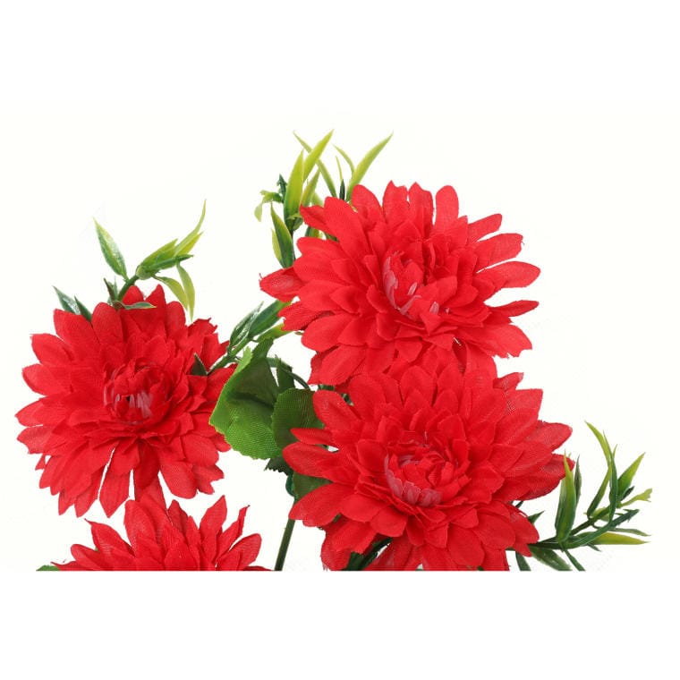Sztuczny kwiat – gałązka pięciu margaretek w intensywnym kolorze czerwonym. Ta efektowna gałązka o długości 68 cm doskonale wkomponuje się w każde wnętrze, wprowadzając do niego energię i radość. Margaretki, znane ze swojego urokliwego wyglądu, symbolizują szczęście i optymizm, co czyni je idealnym wyborem na dekorację zarówno klasycznych, jak i nowoczesnych przestrzeni. Wykonana z wysokiej jakości materiałów, gałązka imituje naturalny wygląd świeżych kwiatów, co pozwala cieszyć się ich pięknem bez konieczności dbania o pielęgnację. Użyj jej jako samodzielnej ozdoby lub w połączeniu z innymi roślinami, aby stworzyć wyjątkowe kompozycje kwiatowe. Dodaj odrobinę koloru i świeżości do swojego otoczenia dzięki tej wspaniałej gałązce margaretek w czerwonym odcieniu.