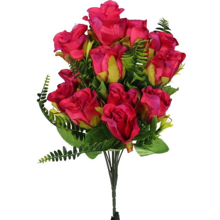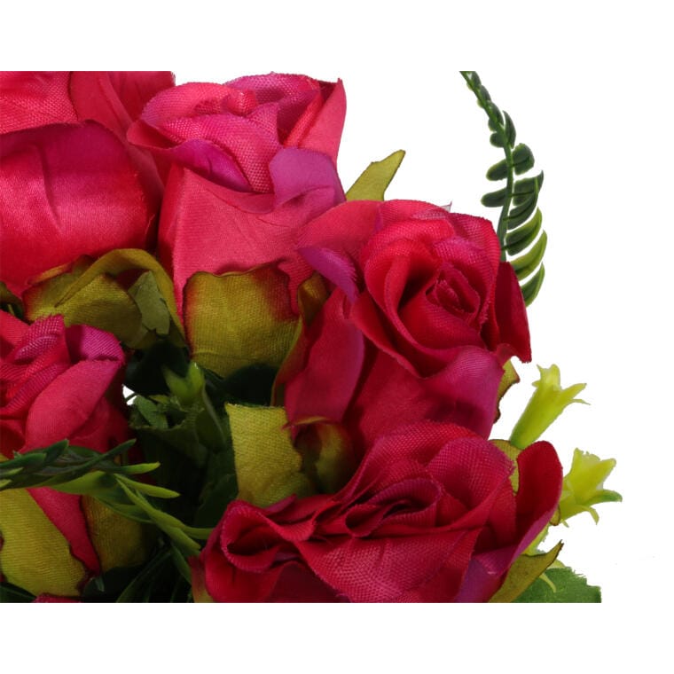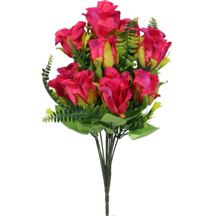 Sztuczny Bukiet 10 Róż w Kolorze Różowym z Paprotkami o Wysokości 40 cm
